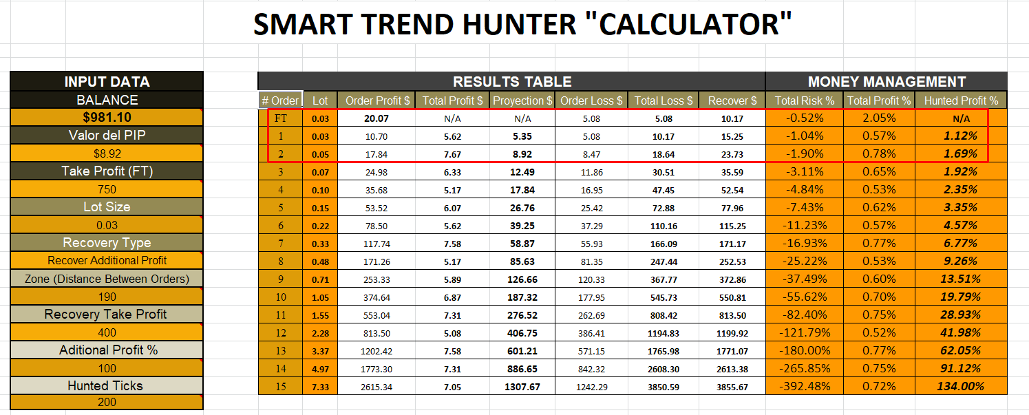 | TRADES | DIRECCIÓN | % RECUPERACIÓN | % RECUPERACIÓN + CACERÍA |